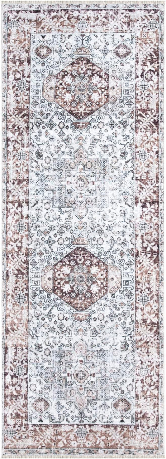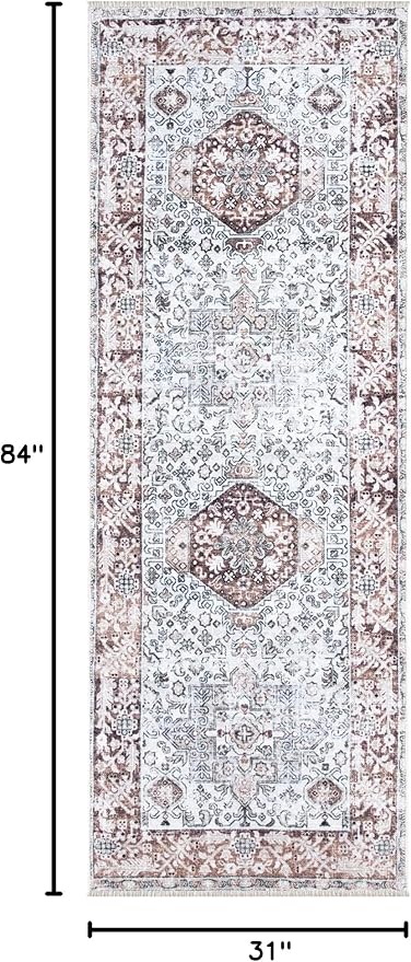 Bloom Rugs Caria Washable Non-Slip 7 ft Runner - Beige/Brown Traditional Runner for Entryway, Hallway, Bathroom, and Kitchen - Exact Size: 2'6" x 7'