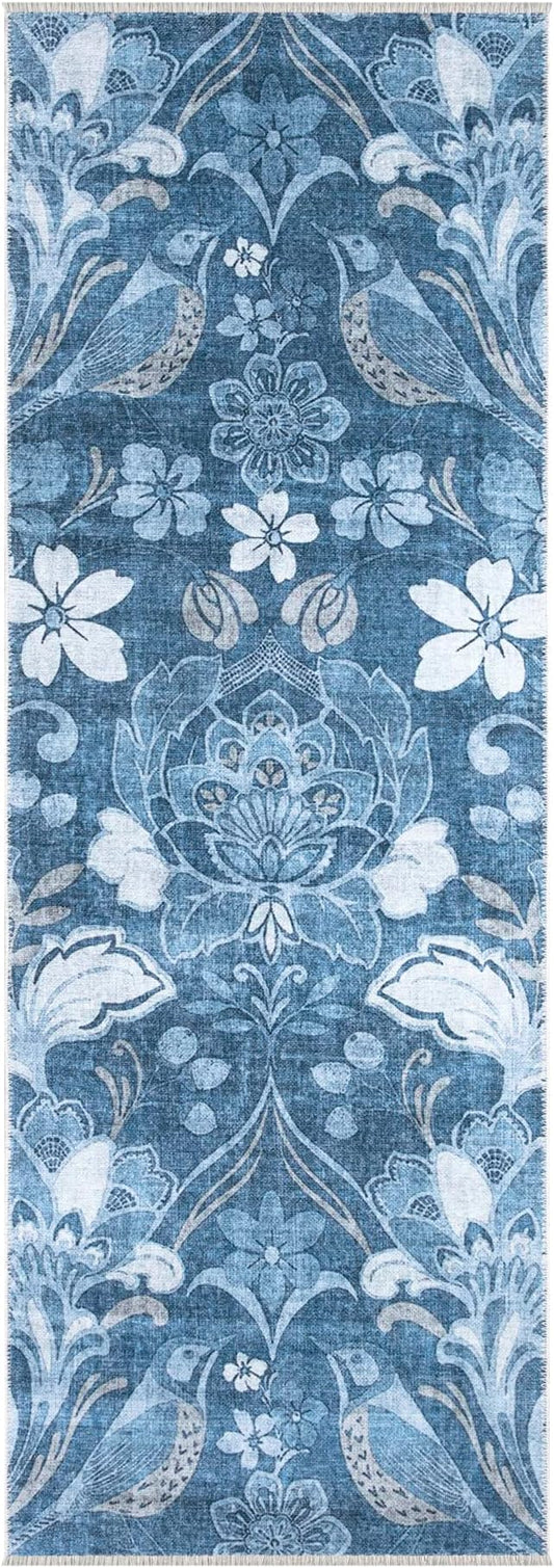 Bloom Rugs Caria Washable Non-Slip 10 ft Runner - Blue/Ivory Floral Runner for Entryway, Hallway, Bathroom, and Kitchen - Exact Size: 2'6" x 10'