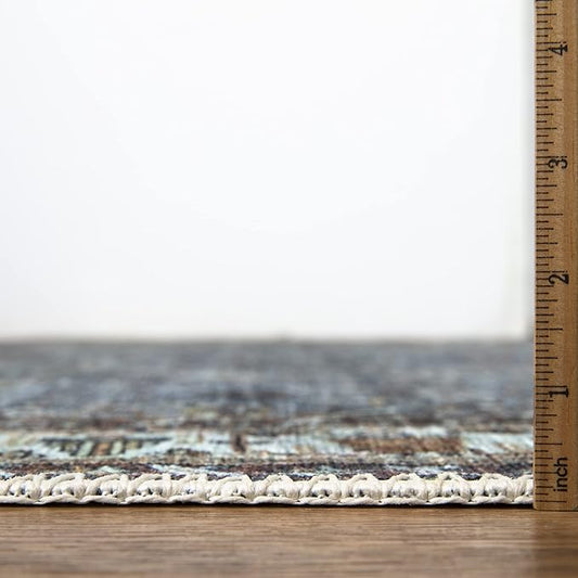 Bloom Rugs Washable 10 ft Runner - Slate Gray/Blue Traditional Runner for Entryway, Hallway, Bathroom, and Kitchen - Exact Size: 2.5' x 10'