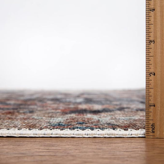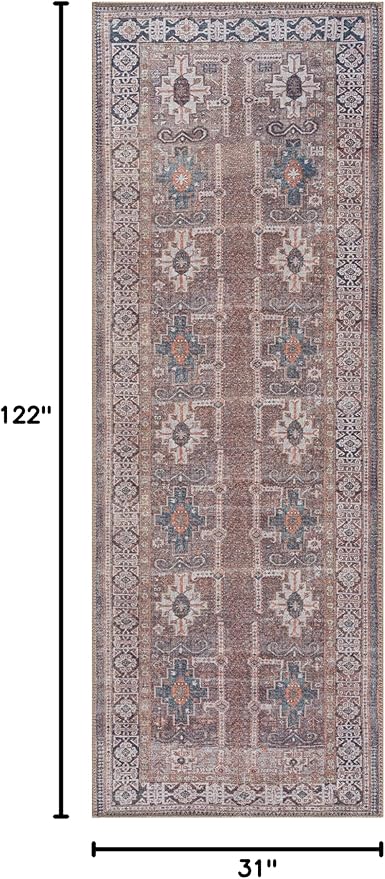Bloom Rugs Washable 10 ft Runner - Brown/Blue/Orange Traditional Runner for Entryway, Hallway, Bathroom, and Kitchen - Exact Size: 2.5' x 10'