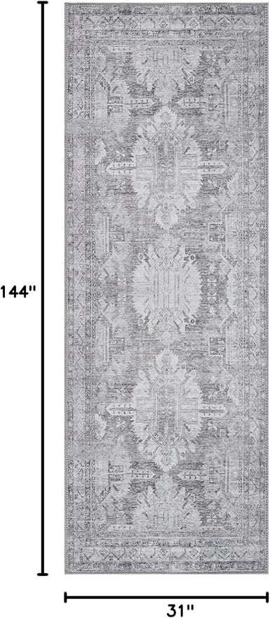 Bloom Rugs Washable Non-Slip 12 ft Runner - Gray Traditional Bordered Runner for Entryway, Hallway, Bathroom, and Kitchen - Exact Size: 2.5' x 12'