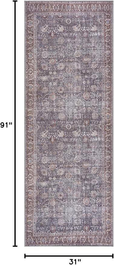 Bloom Rugs Washable 7 ft Runner - Brown/Dark Gray Traditional Runner for Entryway, Hallway, Bathroom, and Kitchen - Exact Size: 2.5' x 7'