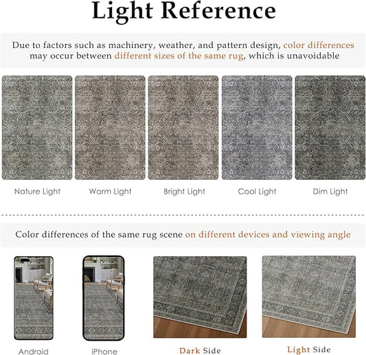 Grey Brown Runner Rug 2x6 Vintage Carpet Hallway Long Indoor Kitchen Washable Living Room Low Pile Traditional Distressed Retro Accent Throw Rug Non Slip Laundry Bathroom Office Dining Room