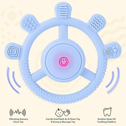Vibrating Teether for Baby, Sensory Chew Toys for Autistic Children & Teething Toys for Babies 6-18 Months, USB Chargeable & 3X Vibration Settings. Toddler Travel Essential, Autism Sensory Products