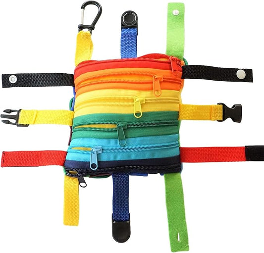 SENSORY4U Buckle Pillow Sensory Fine Motor Development Toy Activity Plushie - OT Therapy Tool Threading Counting Latches Zipper Skills