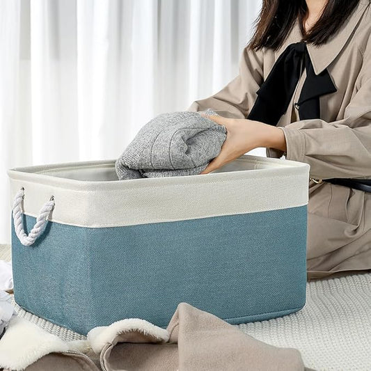 OIAHOMY Storage Basket, Woven Baskets for Storage, Cotton Rope Basket for toys,Towel Baskets for Bathroom - Pack of 3,White Blue