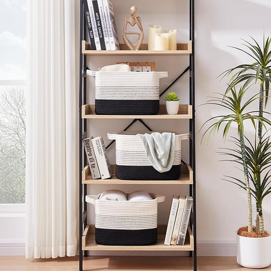 OIAHOMY Storage Basket, Woven Baskets for Storage, Cotton Rope Basket for toys,Towel Baskets for Bathroom - Pack of 3, Black