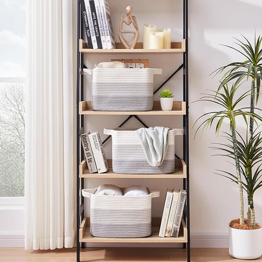 OIAHOMY Storage Basket, Woven Baskets for Storage, Cotton Rope Basket for toys,Towel Baskets for Bathroom - Pack of 3, Gradient Dark
