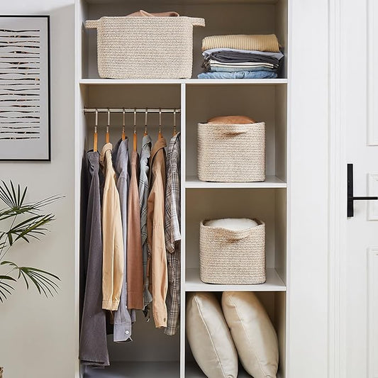 OIAHOMY Storage Basket, Woven Baskets for Storage, Cotton Rope Basket for toys,Towel Baskets for Bathroom - Pack of 3, Rainbow Pastel
