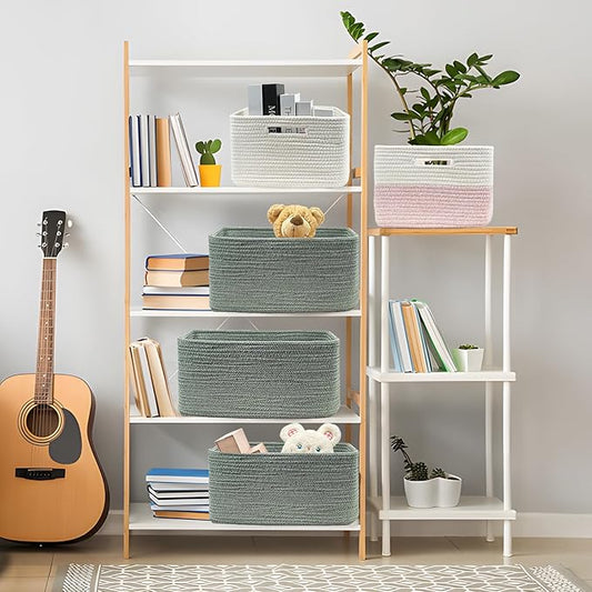 COMFY-HOMI 2 pcs Large Storage Baskets for Shelves, Laundry Basket, Woven Rope Basket, Closet Organizer Bins for Clothes Blanket Towels, Baby Nursery, Gift Toy Baskets, 17” x 13” x 7.5”-green