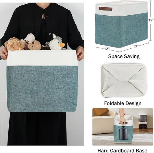 DULLEMELO Extra Large Storage Baskets, Fabric Storage Bins for Organizing Shelves Nursery Toys Books, Closet Baskets and Bins with Handles, White&Teal, 2-Pack