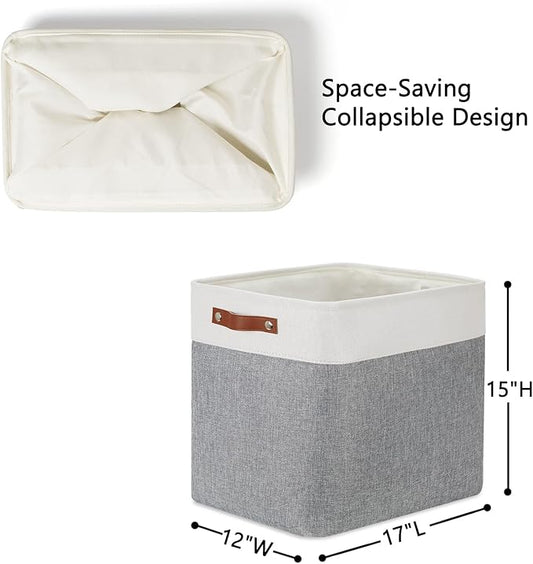 DULLEMELO Extra Large Storage Baskets, Fabric Storage Bins for Organizing Shelves Nursery Toys Books, Closet Baskets and Bins with Handles, White&Grey, 2-Pack