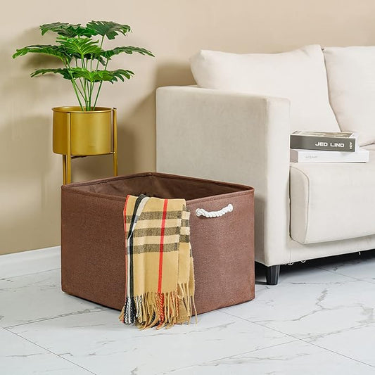 TheWarmHome Fabric Storage Basket for Home, Shelf, Closet - Canvas Bin for Dog Toys and Baby Items (Brown, 1 Pack, 13.8L9.8W6.7H)