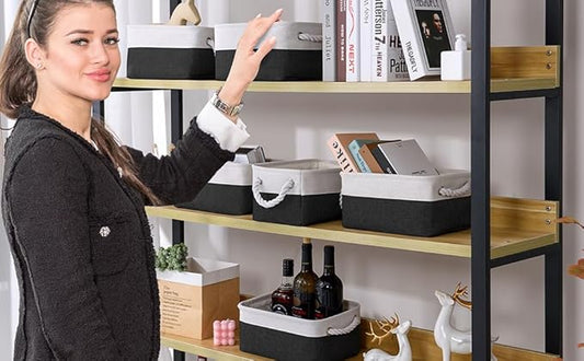 TheWarmHome Storage Bins for Shelves - 6 Pack 11.8x7.8x5.2 inch Collapsible Storage Cubes, Basket for Gifts Empty Closet Organizing Dog Toy Box (White & Black)