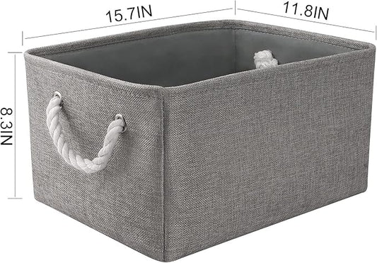TheWarmHome Storage Bins Basket - Storage Baskets for Organizing Shelves,Home Closet Organizer for Book Shelf Organization,Fabric Storage Cubes,Medium Decorative Grey Basket Gift