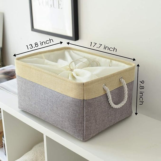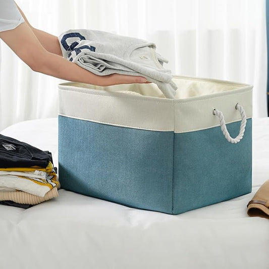 TheWarmHome Storage Bins for Shelves - 1 Pack 13.8x9.7x6.7 inch Collapsible Storage Basket for Organizing, Dog Toy Bin for Closet Organizer laundry Cloth Nursery (White & Jean Blue)