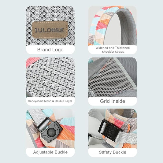 IULONEE Baby Carrier, Embrace Cozy 4-in-1 Infant Carrier Ergonomic Adjustable Holder Portable Convertible Front and Back Backpack Carry for Infants Toddlers Babies Girl and Boy 7-45 Pounds (Colorful)