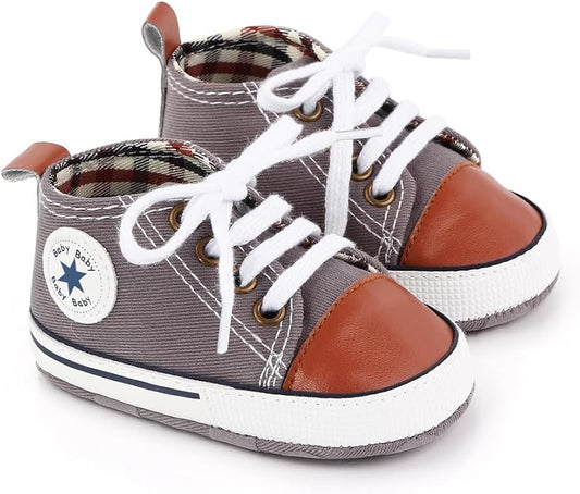 Unisex Baby Boys Girls Shoes, Newborn Infant Non-Slip Canvas Denim High Top Sneakers, Toddler First Walkers Shoes