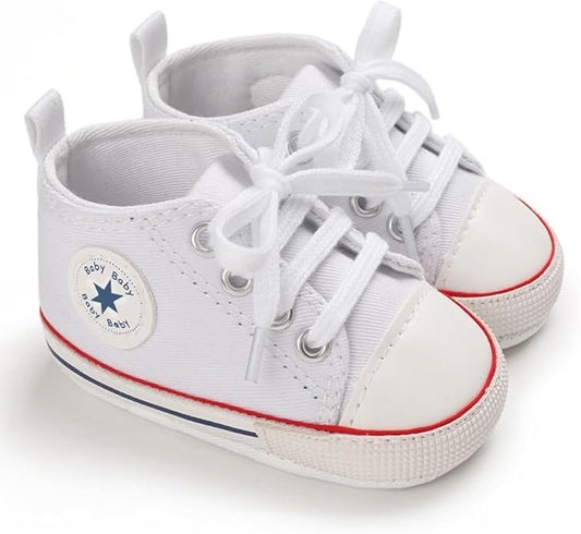 Unisex Baby Boys Girls Shoes, Newborn Infant Non-Slip Canvas Denim High Top Sneakers, Toddler First Walkers Shoes