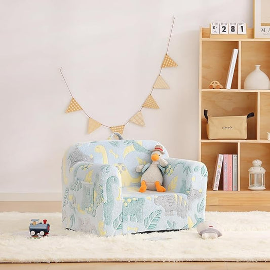 Toddler Chair Plush Kids Couch, Comfy Glow in The Dark Armchair with Removable and Washable Cover Carrying Handle Kids Sofa, Convertible Reading Chair Toddler Couch for Girls and Boys