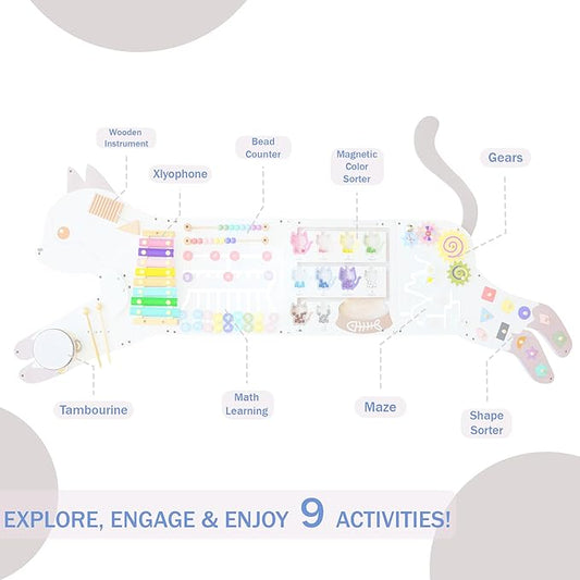 Cat Activity Wall Busy Board Panels, Toddler Learning Activity Center, Montessori Sensory Activity Board, Educational Toys for Children’s Playroom & Daycare