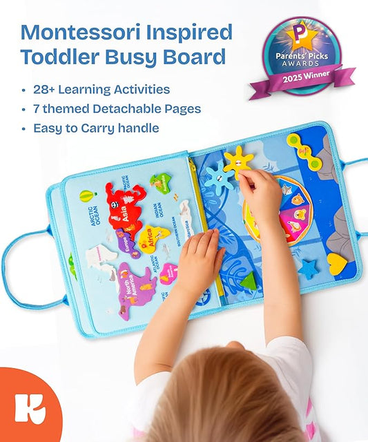 Toddler Busy Board Montessori Toys for Toddlers 1-3 Year Old Educational Activity Book Board Sensory Travel Toys Ages 2-4 Preschool Learning Fine Motor Skills Toy Quiet Book Gift for Kids