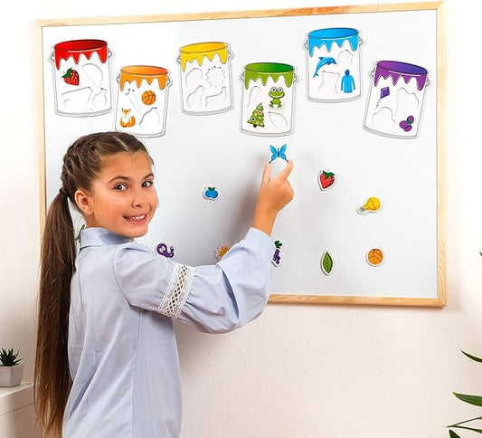 Simply magic 11 Jars Magnetic Color Sorting Set - Color Sorting Toys for Toddlers, Magnetic Shapes, Learning Colors Recognition Magnets, Color Matching Games for Toddlers, Preschool Circle Time