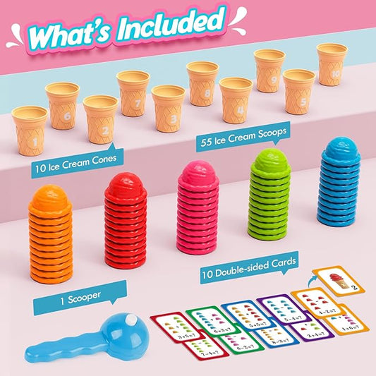 Aizweb Ice Cream Counting and Color Sorting Stacking Toys for Toddlers, Montessori Preschool Kindergarten Learning Activities,Number Math Manipulatives Math Games Educational Fine Motor Skills Toys