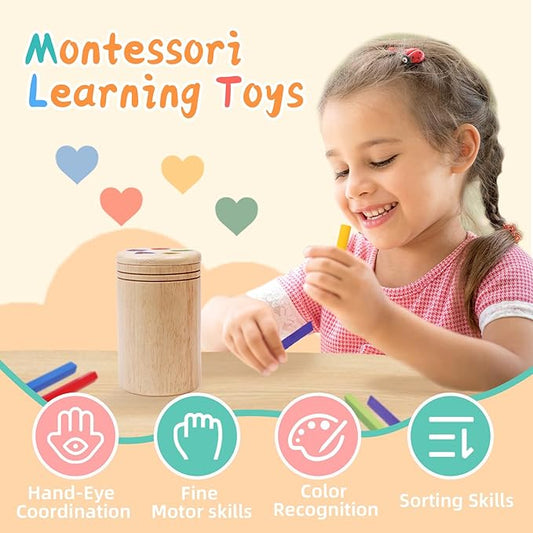 Montessori Wooden Stick Color Sorting Toys for 3 Year Old,Preschool Learning Activities Educational Fine Motor Matching Game,Birthday Gifts for Boys Girls