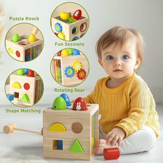 6-in-1 Wooden Shape Sorter for Toddlers 1 2 3+ Years | Educational Montessori Toy with Numbers, Shapes, Colors | Develops Fine Motor Skills | 100% Child Safe | Learning Gift for Kids