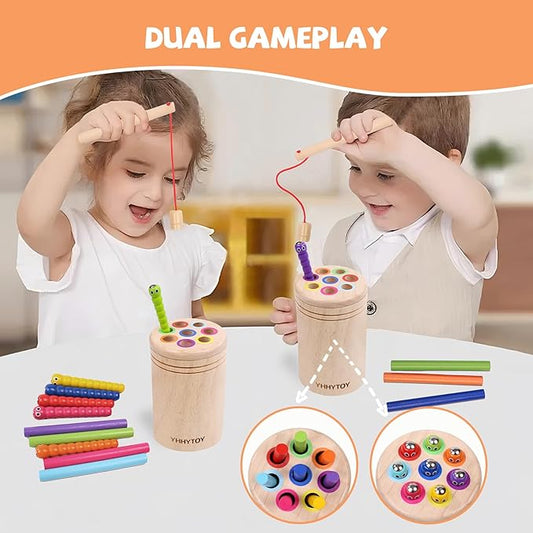 Montessori Toys for 2 3 4 Year Old, Dual Gameplay 18 Month Old Toy Preschool Color Sorting Toddler Magnetic Fishing Game, Fine Motor Skills Wooden Sensory Toys for Ages 2-4 Girls Boys Gifts for Kids