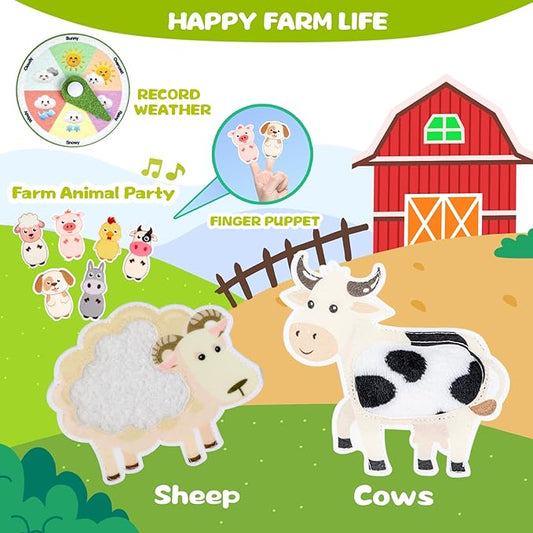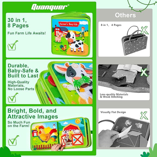 Quanquer Montessori Busy Books for Toddlers 1-3 – Farm Animal Sensory Busy Board for 1 Year Old Boys and Girls, Educational Travel Toy for Airplane Activities, Fine Motor Skill Birthday Gift