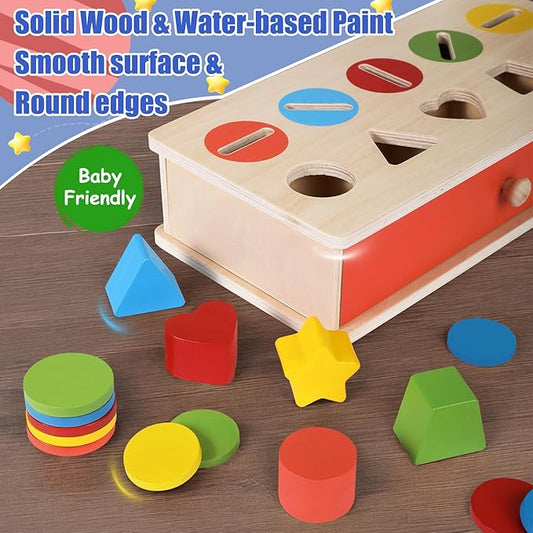 Wooden Color Shape Sorting Matching Toys, Shape Sorters for Toddlers, Fine Motor Skills Early Learning Montessori Toys, Gift for 3 4 5 6 Year Old Boy Girl Kid Gifts