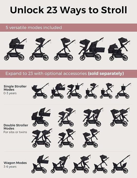 Momcozy ChangeGo Baby Stroller, Convertible Single-to-Double-to-Wagon Stroller with 23 Configurations, Seat Included, Large PU Wheels, All-Wheel Suspension & Extendable UPF50+ Canopy