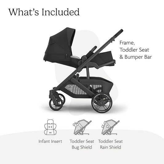 UPPAbaby Cruz V3 Stroller - from Birth + Car Seat Compatible - Full-Size, Reversible Seat - Infant Insert, Bug and Rain Shields Included - Jake (Charcoal/Carbon Frame/Black Leather)
