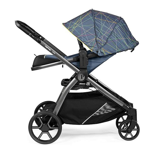 Peg Perego Ypsi – Compact Single to Double Stroller – Compatible with All Primo Viaggio 4-35 Infant Car Seats & Ypsi Bassinets - Made in Italy - New Life (Blue) Innovative Eco-Sustainable Fabric