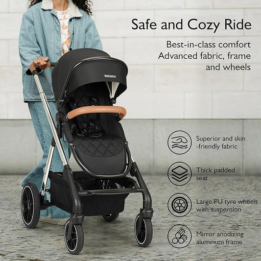 Beberoad Love RX 3-in-1 Baby Stroller with Bassinet, Toddler Stroller, Foldable Newborn Infant Stroller with Organizer, Rain Cover, Sunshade & Mosquito 2 in 1 Cover, Large Storage Basket