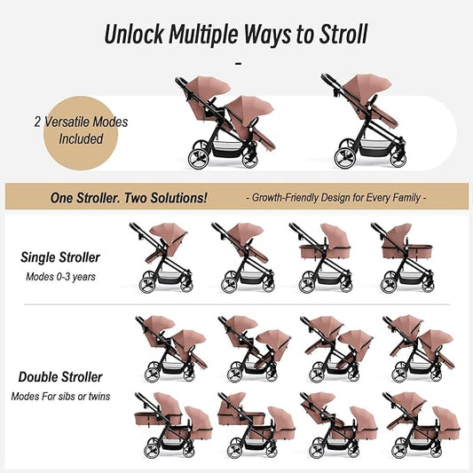 2 in 1 Baby Stroller for Toddler 0-3, Bassinet Stroller for NewbornToddler with Large Storage Basket, Removable Seat, Cup Holder, Shock Absorbing