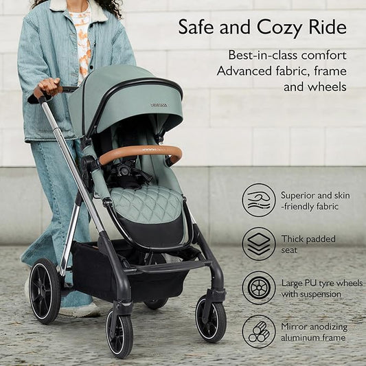 Beberoad Love RX 3-in-1 Baby Stroller with Bassinet, Toddler Strollers, Foldable Newborn Infant Stroller with Organizer, Rain Cover, Sunshade & Mosquito 2 in 1 Cover, Large Storage Basket(Green)