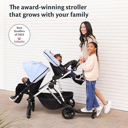 Mockingbird Single-to-Double Stroller 2.0 - Modular Full-Size Baby Stroller for 1, 2 or 3 Kids - Includes Cup Holder - Sea