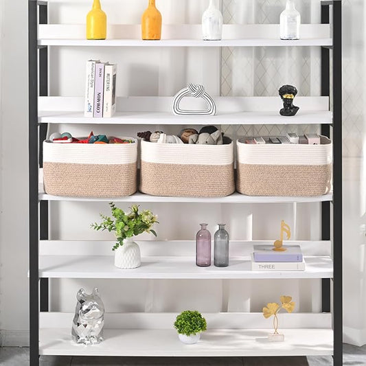 Storage Baskets for Organizing, Woven Cotton Rope Basket for Storage Books, Baby Organizing Baskets, Toy Storage Basket, 15"x11"x9.5", 3 Packs, Off White & Brown