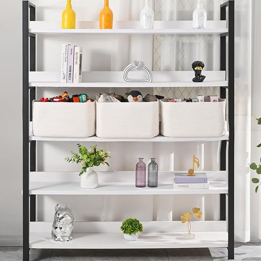 Storage Baskets for Organizing Shelves, Woven Cotton Rope Bins for Baby Nursery Organization, Book Toy Towel Organizer, 15"x11"x9.5", 3 Packs, Off White