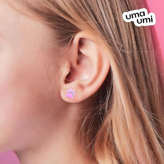 925 Sterling Silver Paw Pink Stud Earrings for Girls Hypoallergenic Safety Screw Back Rhodium Plated - Paw Pink Gifts Earrings for Baby Toddlers Little Teens Kids Jewelry