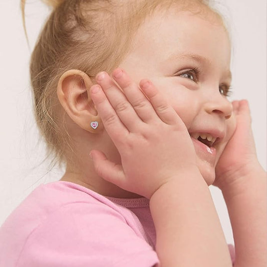 925 Sterling Silver White Simulated Opal Birthstone Heart Safety Screw Back Earrings for Little Girls, Pre-Teens and Teens 8mm - Beautiful Heart Shaped Earrings with CZ Stones