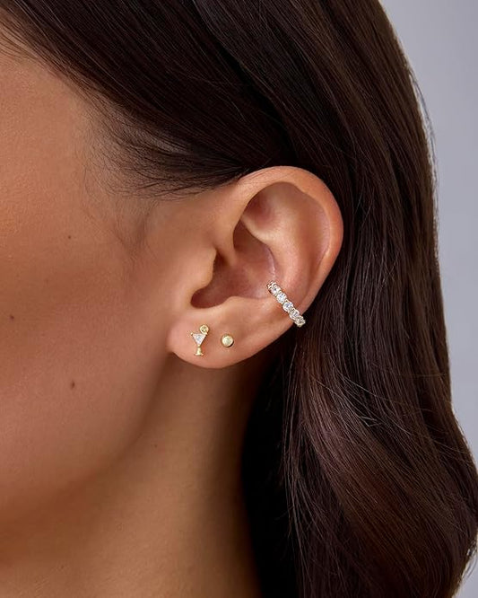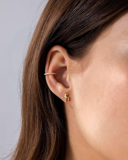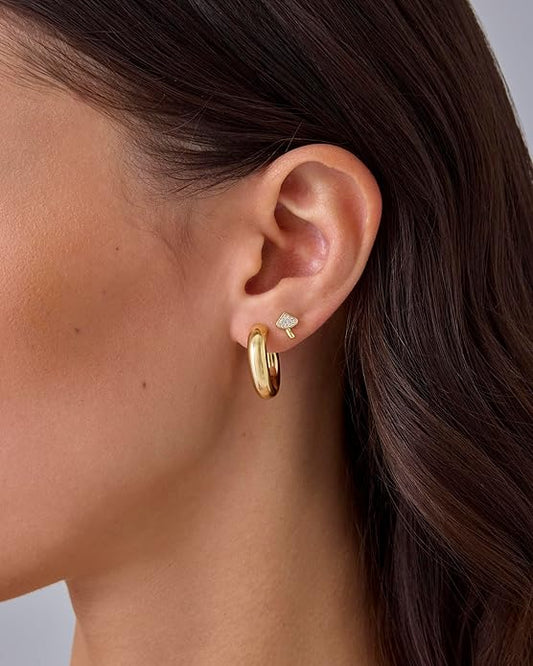 PAVOI 14K Gold Plated Dainty Flat Back Earrings for Women - Hypoallergenic Sterling Silver Posts Helix Cartilage Piercing Jewelry - Emoji Motif Bow Celestial Flatback Gold Stud Earrings Screw Back
