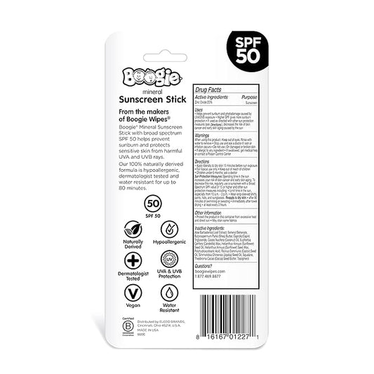 Baby Sunscreen Stick by Boogie Block, Mineral Sunscreen SPF 50, Travel Size Sunblock for Kids, Zinc Oxide, Water Resistant, Vegan, Fragrance Free Pack of 1