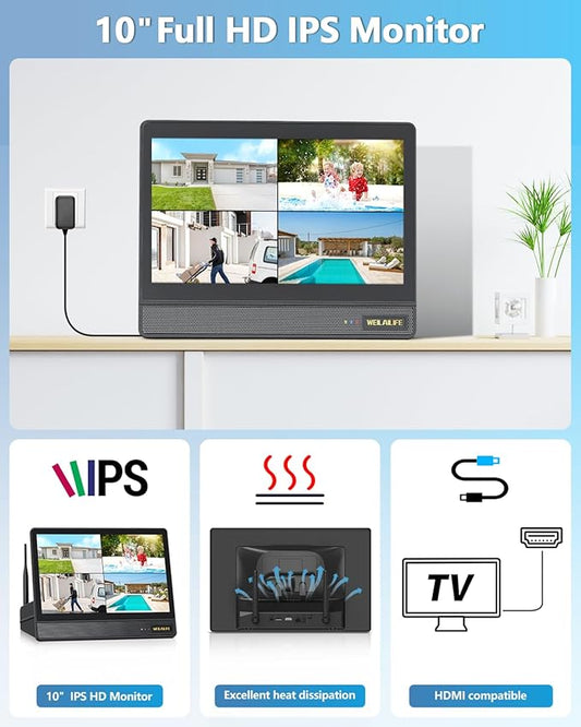 5MP Wireless Security Camera System with 10" Monitor, Outdoor WiFi Home Video Cameras Systems Surveillance DVR Kits