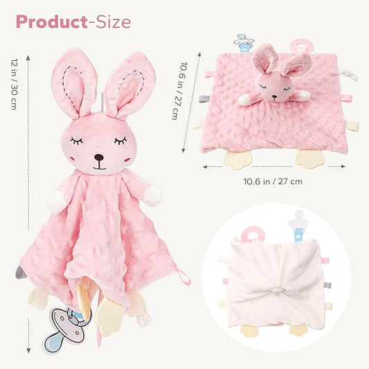 ZIGJOY Loveys for Babies Baby Security Blanket Soft Bunny Lovey for Girls Gifts Newborn Pink Lovie for Infant and Toddler, Rabbit