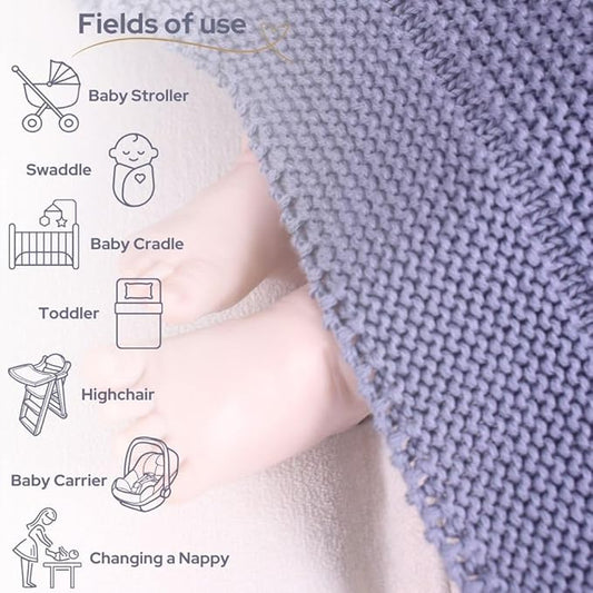 100% Organic Cotton Baby Knitted Blanket with Gift Box - Soft Toddler, Crib, Stroller Blanket - Neutral Swaddle and Receiving Blanket for Newborns, 30"x40", Smoke Blue