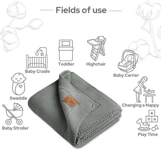 Organic Cotton Baby Blanket - 31.5 x 43.3 Inches, Soft Knitted Crib Blanket for Boys & Girls, Breathable Design (Green)